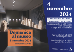 Si riparte subito con due giornate ad ingresso gratuito per tutti i visitatori: domenica 3 novembre per il consueto appuntamento con #domenicalmuseo e lunedì 4 novembre per la giornata dell’unità nazionale e delle forze armate.